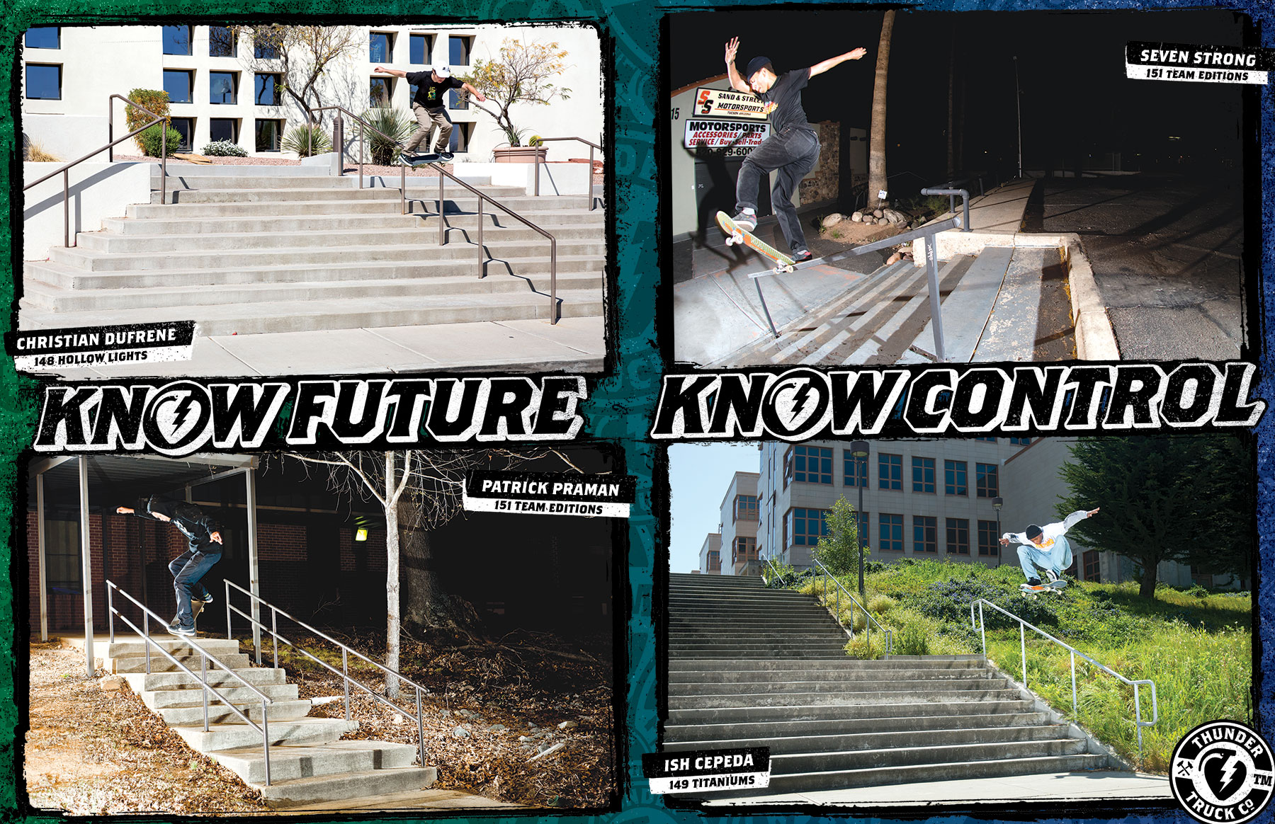 Click here to see the new know future ad Follow@thundertrucks The Future Knows WIN THUNDERS & HAVE YOUR VIDEO FEATURED ON THUNDER'S INSTAGRAM Tag your video clips on instagram with #KNOWFUTURE We'll pick our favorite clips to be featured! Thundertrucks.com Thunder Spring '17 Follow@thundertrucks Thundertrucks.com Thunder Spring '17