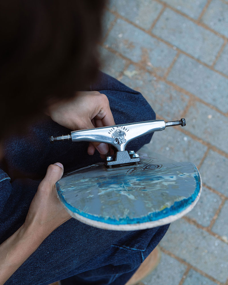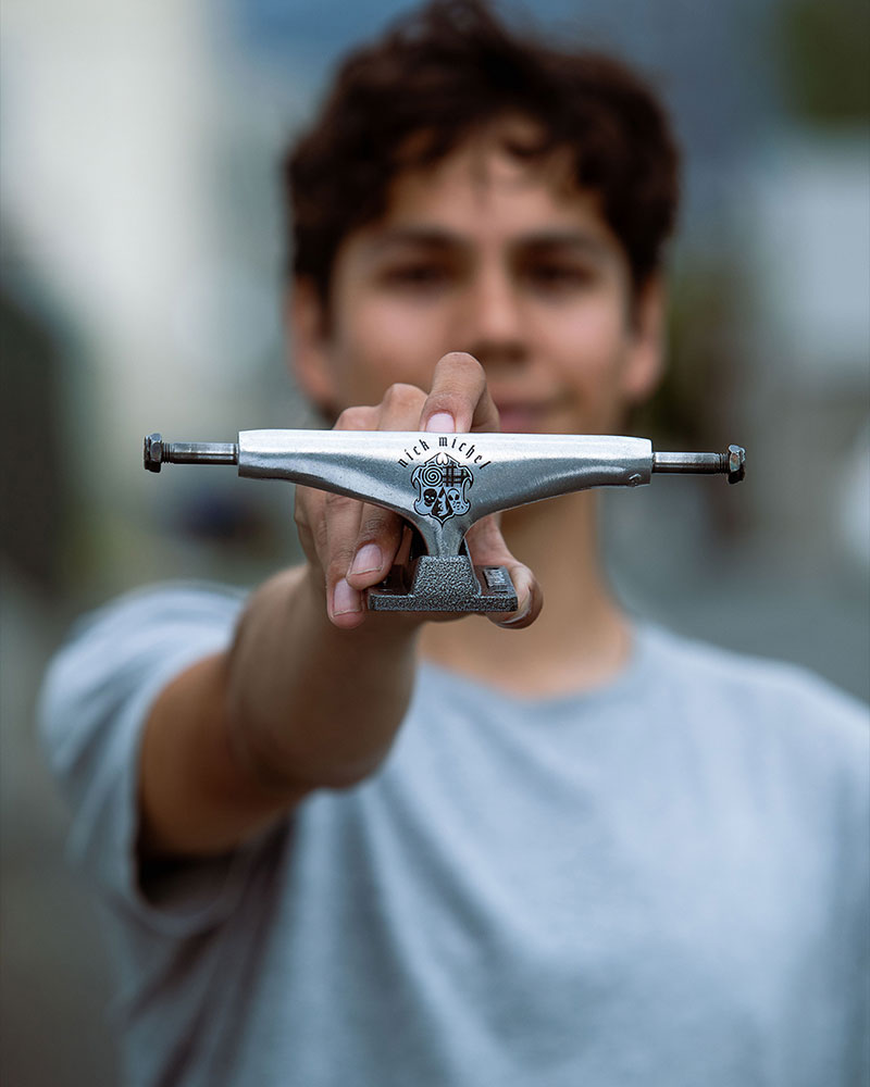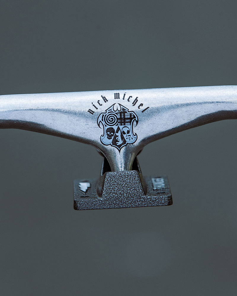 Nick's new 'Emblem' Pro Edition Trucks with artwork by Izzie Panasci are available now in skate shops worldwide. 148 - 8.25" Axle & 149 - 8.5" Axle.