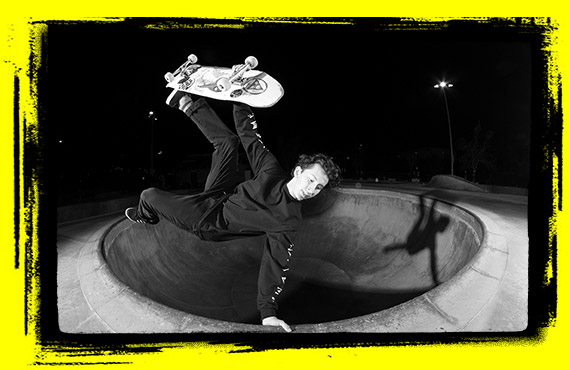 I usually skate with my co- workers, my girlfriend Nora and Dylan Witkin. Usually just who ever is at my local skatepark.