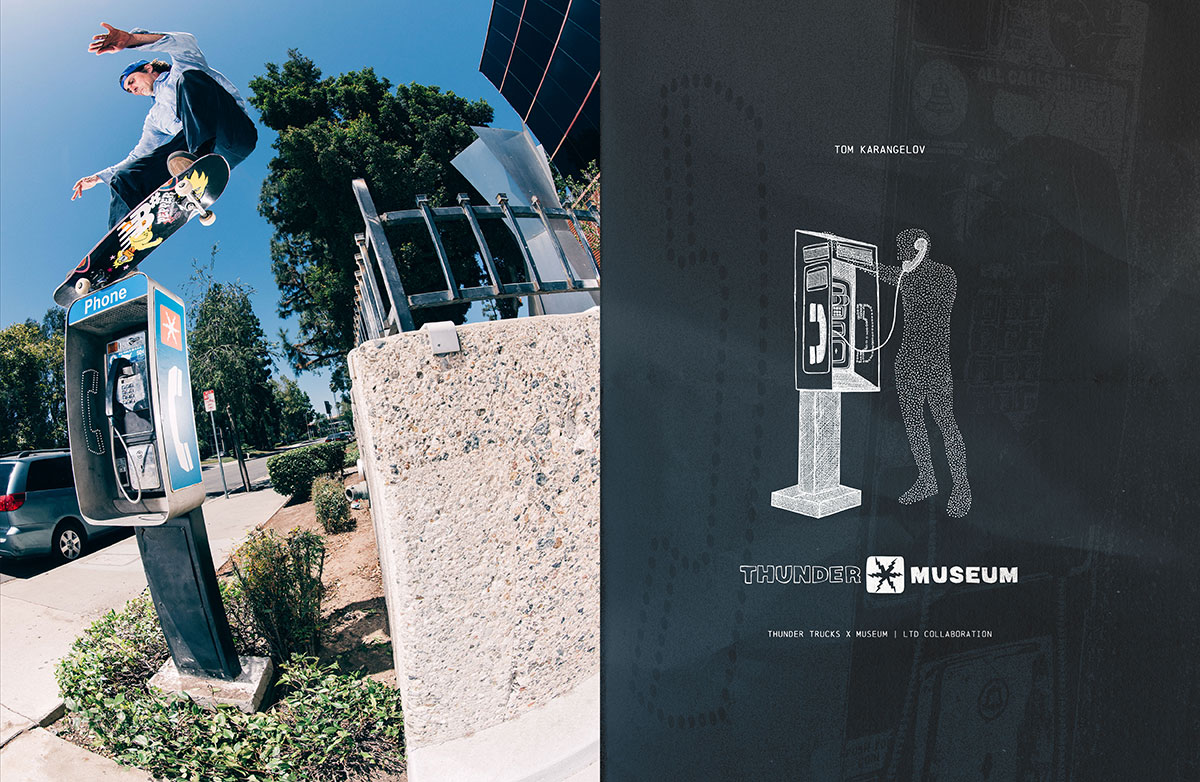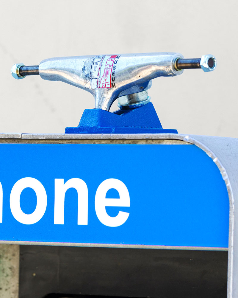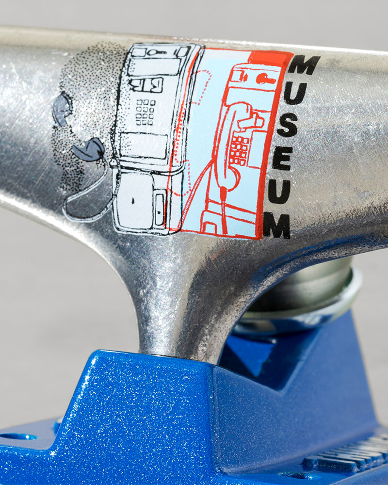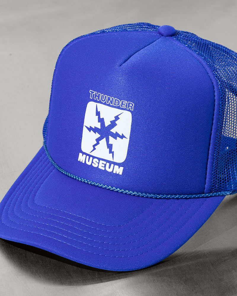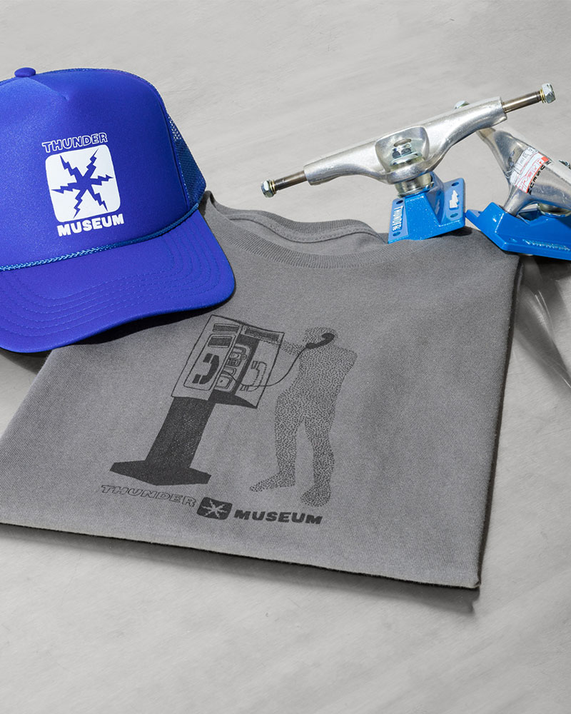 Limited Museum X Thunder collection featuring 148 & 149 Team Edition Trucks, charcoal short sleeve tee, and blue trucker hat all available now in skate shops worldwide.