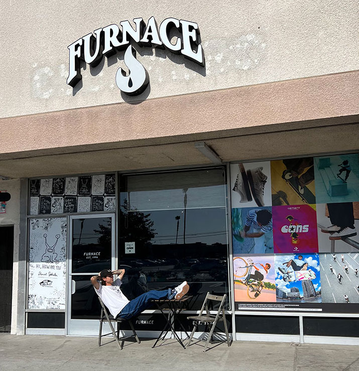 Anything and everything involving Furnace for sure. We are always stoked when we find genuine help around the shop, I know all skate shop owners with some skin in the game struggle with that. We can expect his consistent growth within the shop, constant wiz clips, video parts...all with a light-hearted outlook. Looking forward to the journey!
