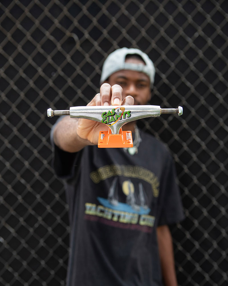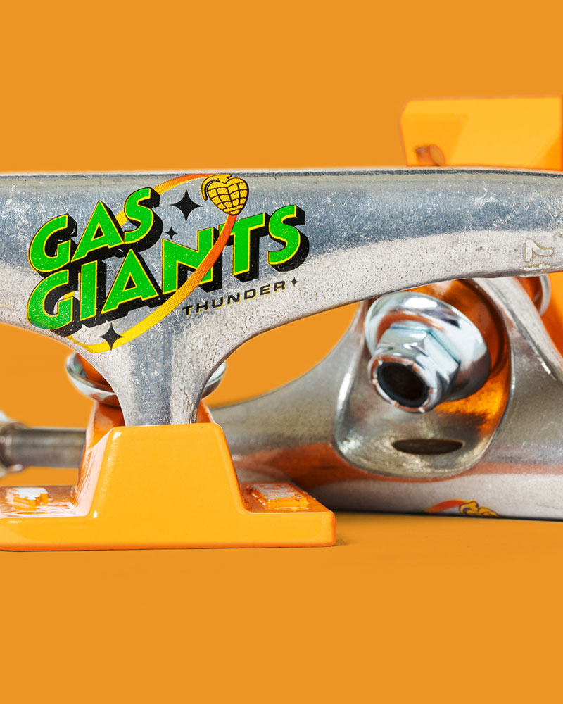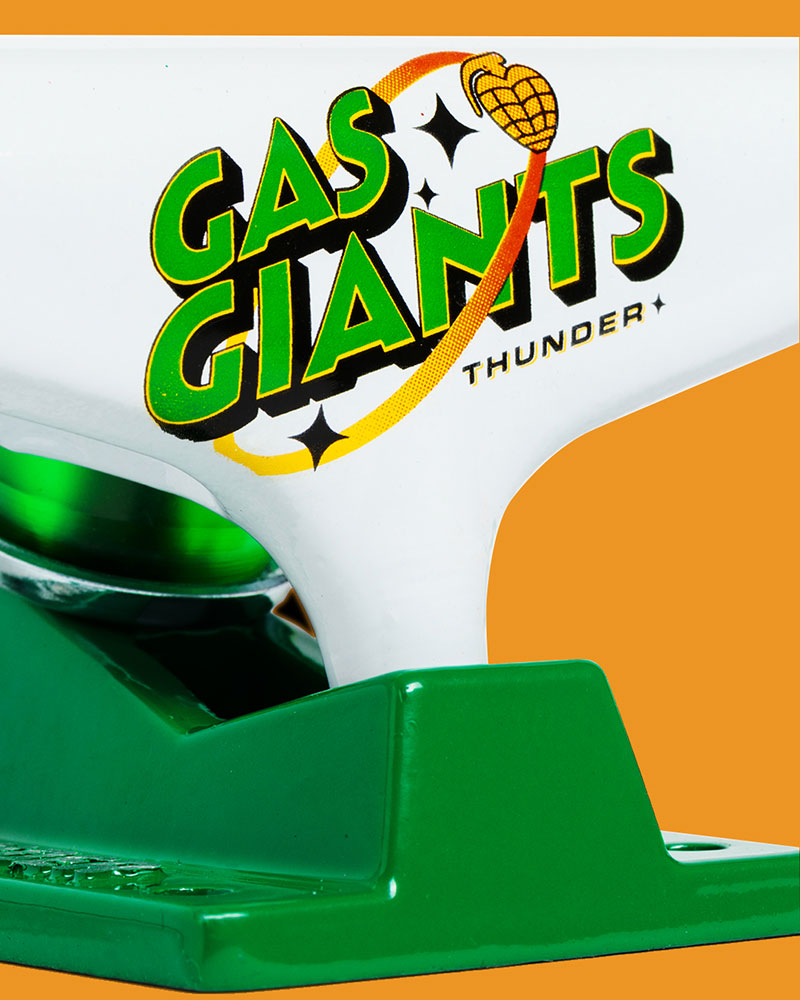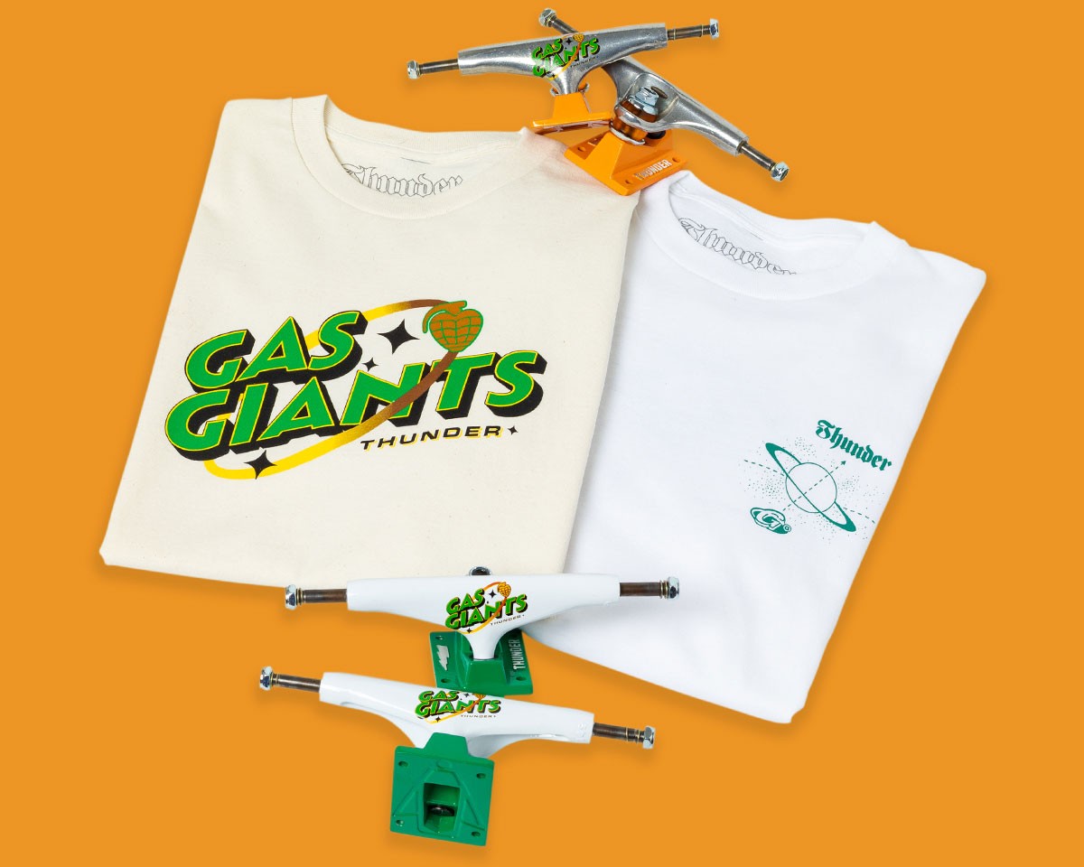 Limited Gas Giants Collection featuring polished/orange 147 & white/green 149 Team Edition trucks and softgoods available now in finer skate shops worldwide.